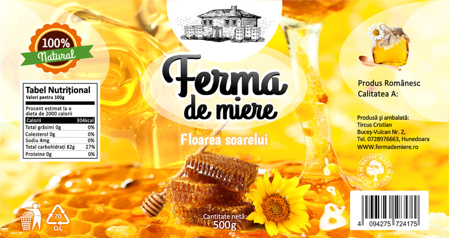 Doresc o eticheta pentru un borcan de miere in genul celei din attach.